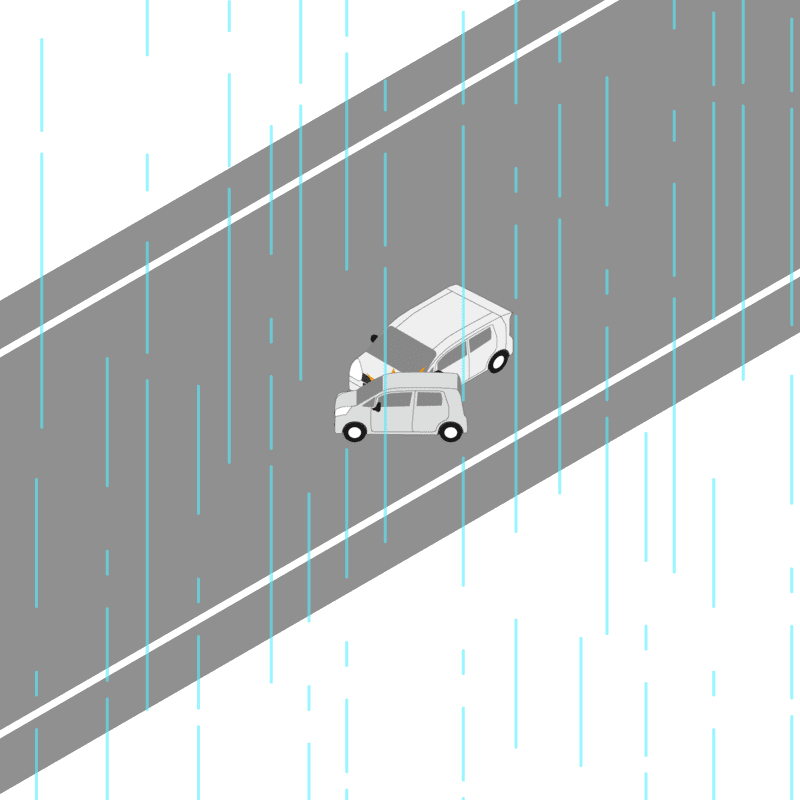 ・イラストに使用している各要素(車、背景、車、天候、信号、衝突地点など)は、代表的なイメージをイラスト化しており、色や形状等含め現実の事故の状況とは異なります。あくまで、事故のイメージとして参考までにご活用ください。