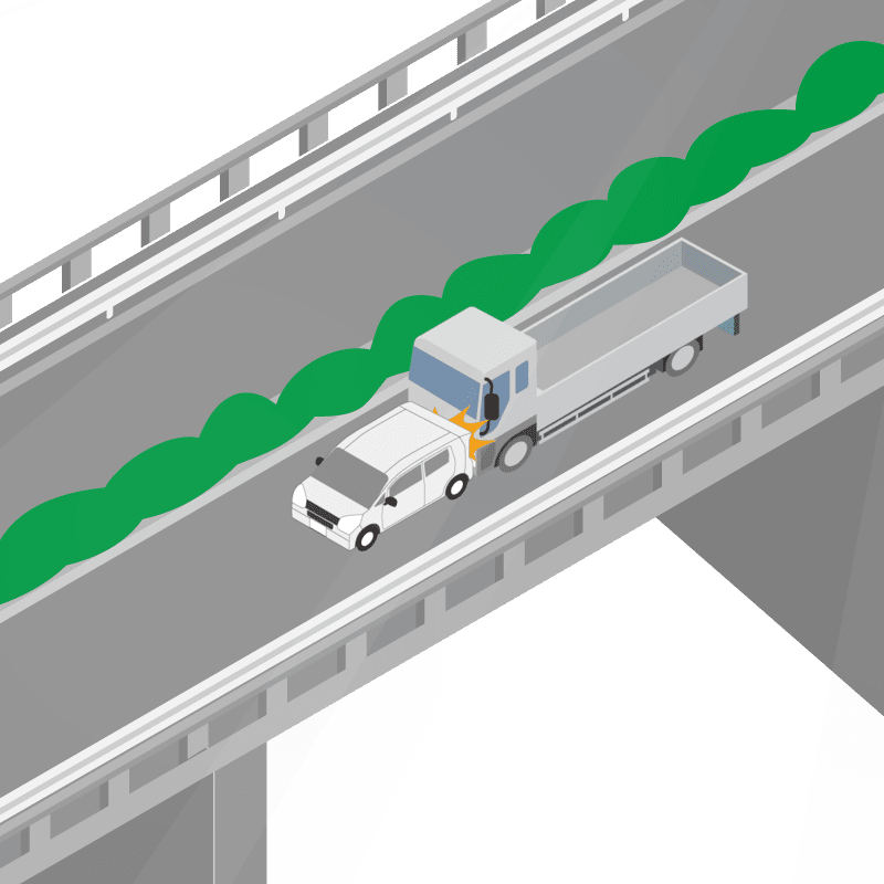 ・イラストに使用している各要素(車、背景、車、天候、信号、衝突地点など)は、代表的なイメージをイラスト化しており、色や形状等含め現実の事故の状況とは異なります。あくまで、事故のイメージとして参考までにご活用ください。