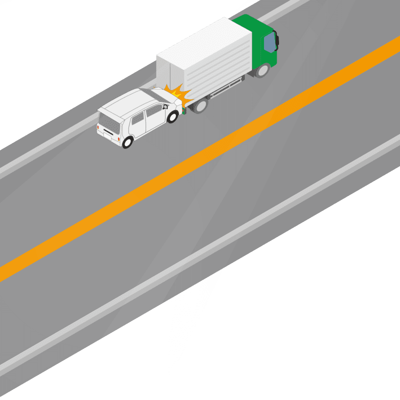 ・イラストに使用している各要素(車、背景、車、天候、信号、衝突地点など)は、代表的なイメージをイラスト化しており、色や形状等含め現実の事故の状況とは異なります。あくまで、事故のイメージとして参考までにご活用ください。