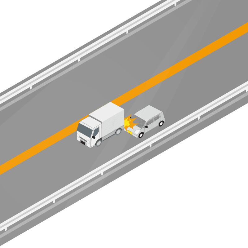 ・イラストに使用している各要素(車、背景、車、天候、信号、衝突地点など)は、代表的なイメージをイラスト化しており、色や形状等含め現実の事故の状況とは異なります。あくまで、事故のイメージとして参考までにご活用ください。