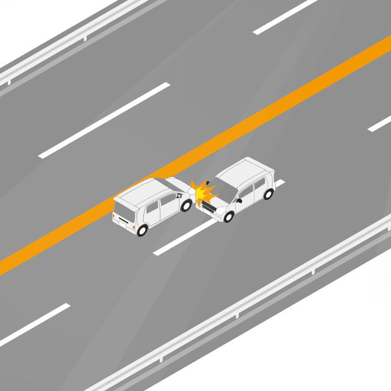 ・イラストに使用している各要素(車、背景、車、天候、信号、衝突地点など)は、代表的なイメージをイラスト化しており、色や形状等含め現実の事故の状況とは異なります。あくまで、事故のイメージとして参考までにご活用ください。