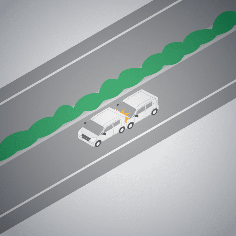 ・イラストに使用している各要素(車、背景、車、天候、信号、衝突地点など)は、代表的なイメージをイラスト化しており、色や形状等含め現実の事故の状況とは異なります。あくまで、事故のイメージとして参考までにご活用ください。