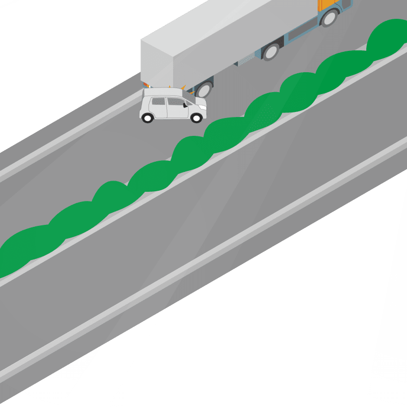 ・イラストに使用している各要素(車、背景、車、天候、信号、衝突地点など)は、代表的なイメージをイラスト化しており、色や形状等含め現実の事故の状況とは異なります。あくまで、事故のイメージとして参考までにご活用ください。
