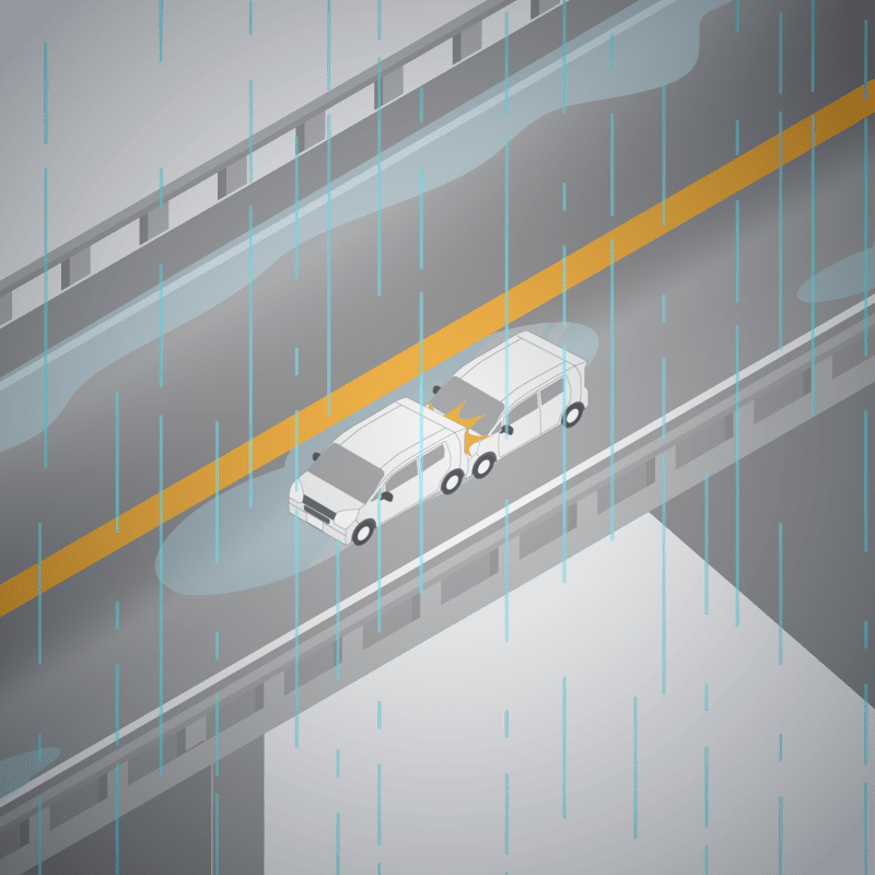 ・イラストに使用している各要素(車、背景、車、天候、信号、衝突地点など)は、代表的なイメージをイラスト化しており、色や形状等含め現実の事故の状況とは異なります。あくまで、事故のイメージとして参考までにご活用ください。