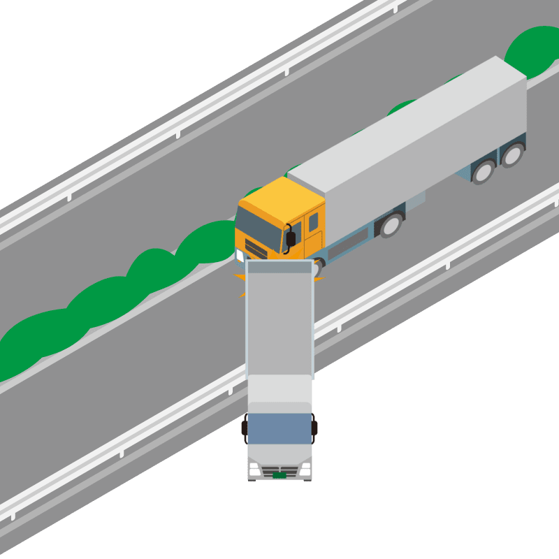 ・イラストに使用している各要素(車、背景、車、天候、信号、衝突地点など)は、代表的なイメージをイラスト化しており、色や形状等含め現実の事故の状況とは異なります。あくまで、事故のイメージとして参考までにご活用ください。