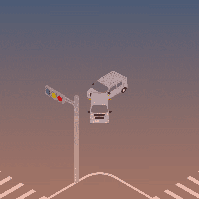 ・イラストに使用している各要素(車、背景、車、天候、信号、衝突地点など)は、代表的なイメージをイラスト化しており、色や形状等含め現実の事故の状況とは異なります。あくまで、事故のイメージとして参考までにご活用ください。