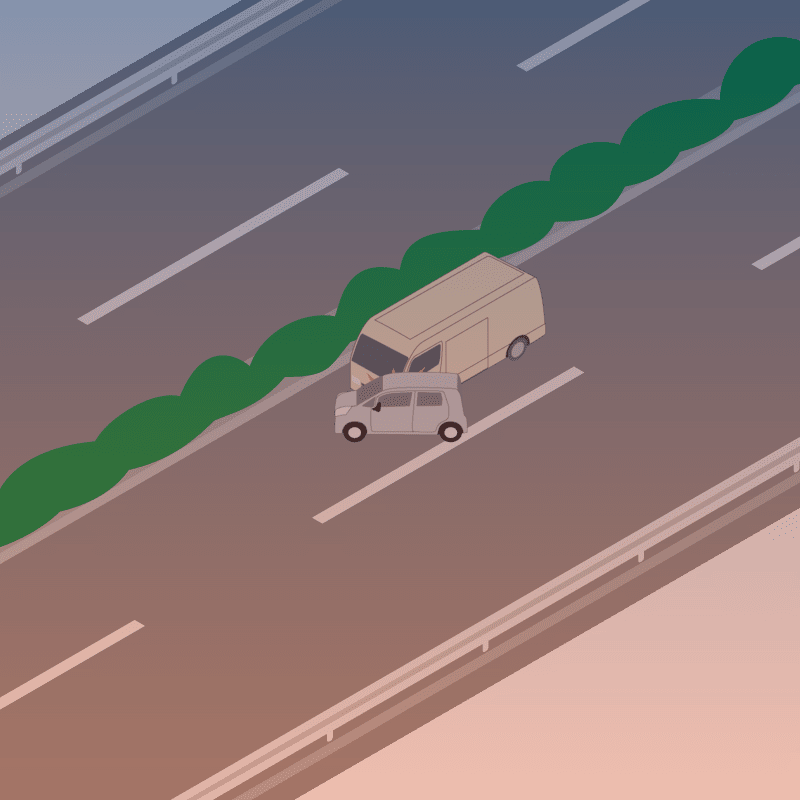 ・イラストに使用している各要素(車、背景、車、天候、信号、衝突地点など)は、代表的なイメージをイラスト化しており、色や形状等含め現実の事故の状況とは異なります。あくまで、事故のイメージとして参考までにご活用ください。