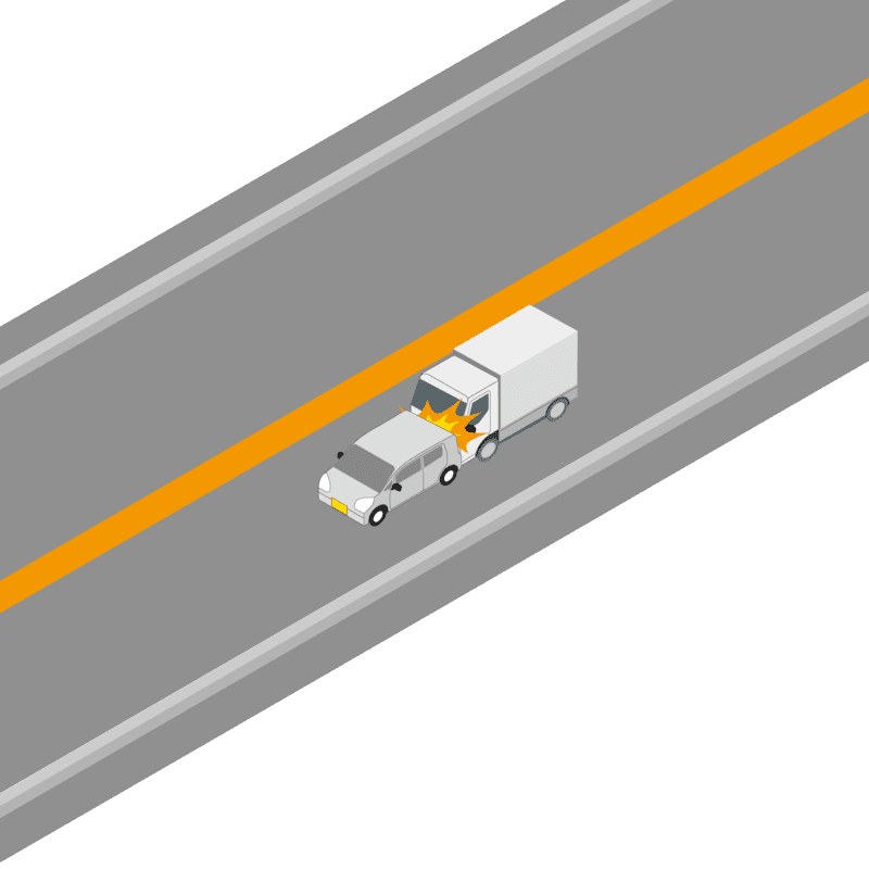 ・イラストに使用している各要素(車、背景、車、天候、信号、衝突地点など)は、代表的なイメージをイラスト化しており、色や形状等含め現実の事故の状況とは異なります。あくまで、事故のイメージとして参考までにご活用ください。
