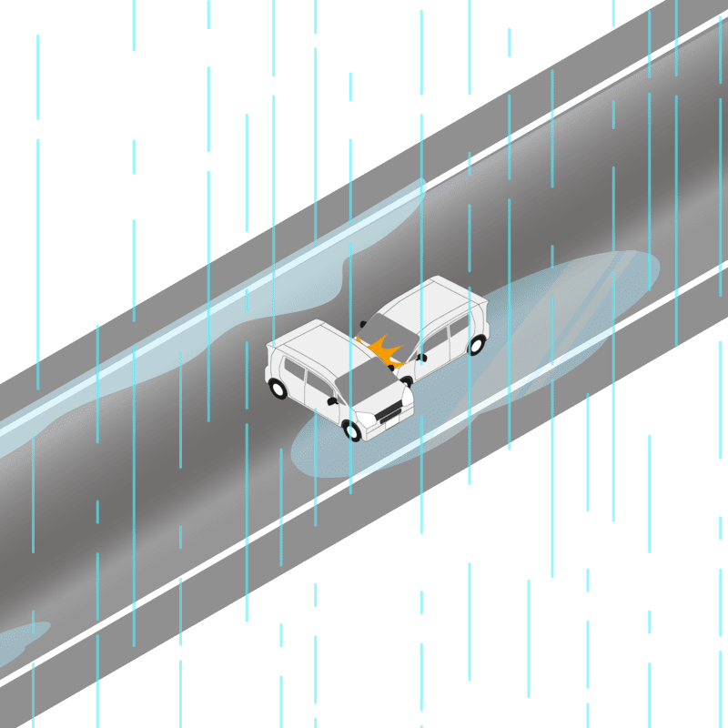 ・イラストに使用している各要素(車、背景、車、天候、信号、衝突地点など)は、代表的なイメージをイラスト化しており、色や形状等含め現実の事故の状況とは異なります。あくまで、事故のイメージとして参考までにご活用ください。