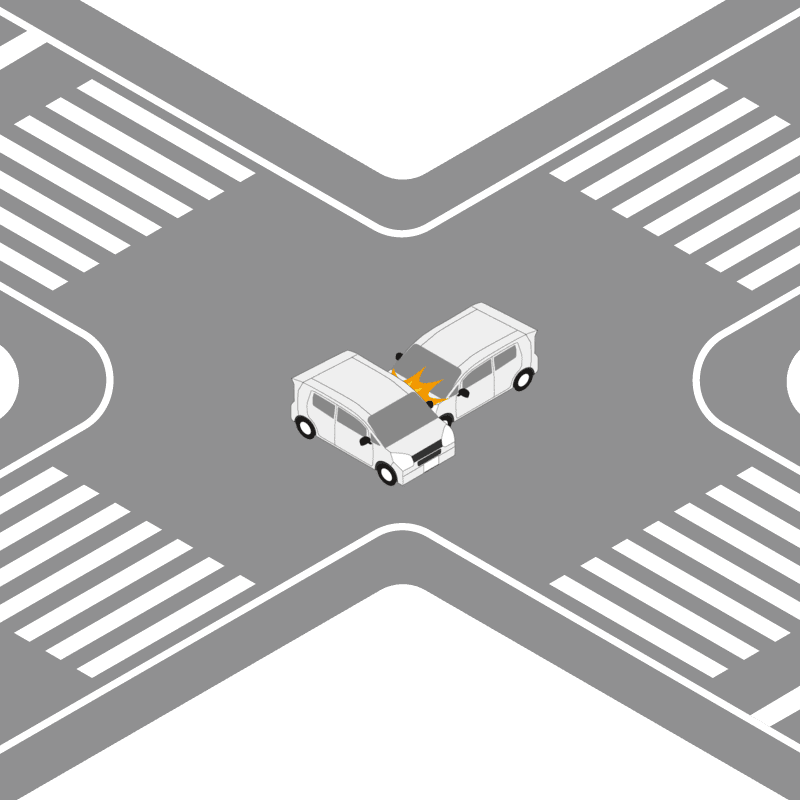・イラストに使用している各要素(車、背景、車、天候、信号、衝突地点など)は、代表的なイメージをイラスト化しており、色や形状等含め現実の事故の状況とは異なります。あくまで、事故のイメージとして参考までにご活用ください。
