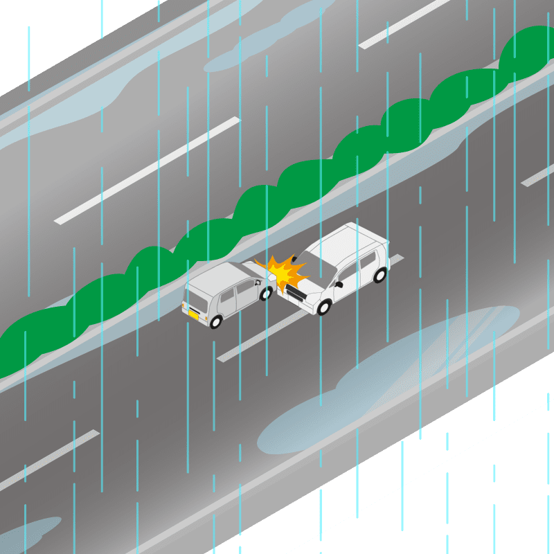 ・イラストに使用している各要素(車、背景、車、天候、信号、衝突地点など)は、代表的なイメージをイラスト化しており、色や形状等含め現実の事故の状況とは異なります。あくまで、事故のイメージとして参考までにご活用ください。