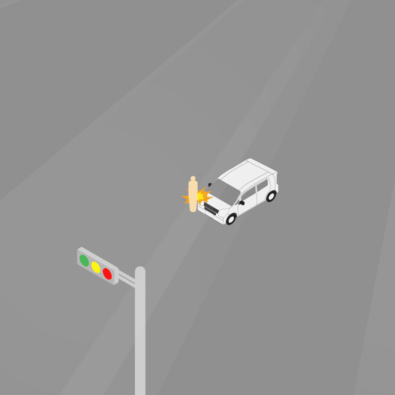 ・イラストに使用している各要素(車、背景、車、天候、信号、衝突地点など)は、代表的なイメージをイラスト化しており、色や形状等含め現実の事故の状況とは異なります。あくまで、事故のイメージとして参考までにご活用ください。