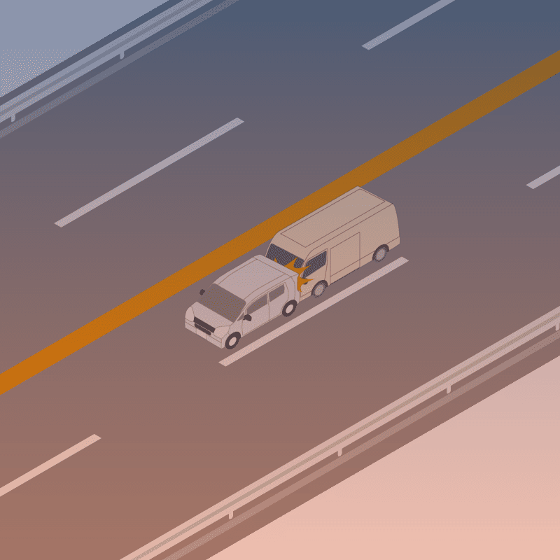 ・イラストに使用している各要素(車、背景、車、天候、信号、衝突地点など)は、代表的なイメージをイラスト化しており、色や形状等含め現実の事故の状況とは異なります。あくまで、事故のイメージとして参考までにご活用ください。