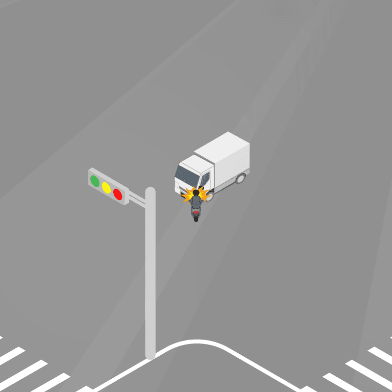 ・イラストに使用している各要素(車、背景、車、天候、信号、衝突地点など)は、代表的なイメージをイラスト化しており、色や形状等含め現実の事故の状況とは異なります。あくまで、事故のイメージとして参考までにご活用ください。