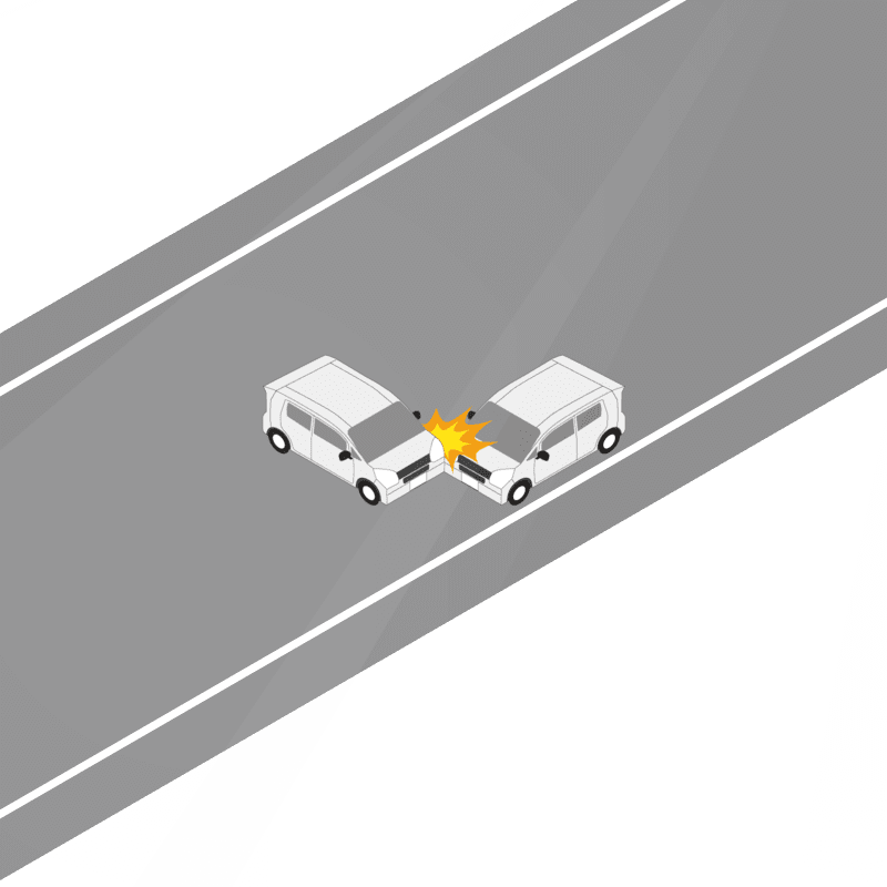 ・イラストに使用している各要素(車、背景、車、天候、信号、衝突地点など)は、代表的なイメージをイラスト化しており、色や形状等含め現実の事故の状況とは異なります。あくまで、事故のイメージとして参考までにご活用ください。