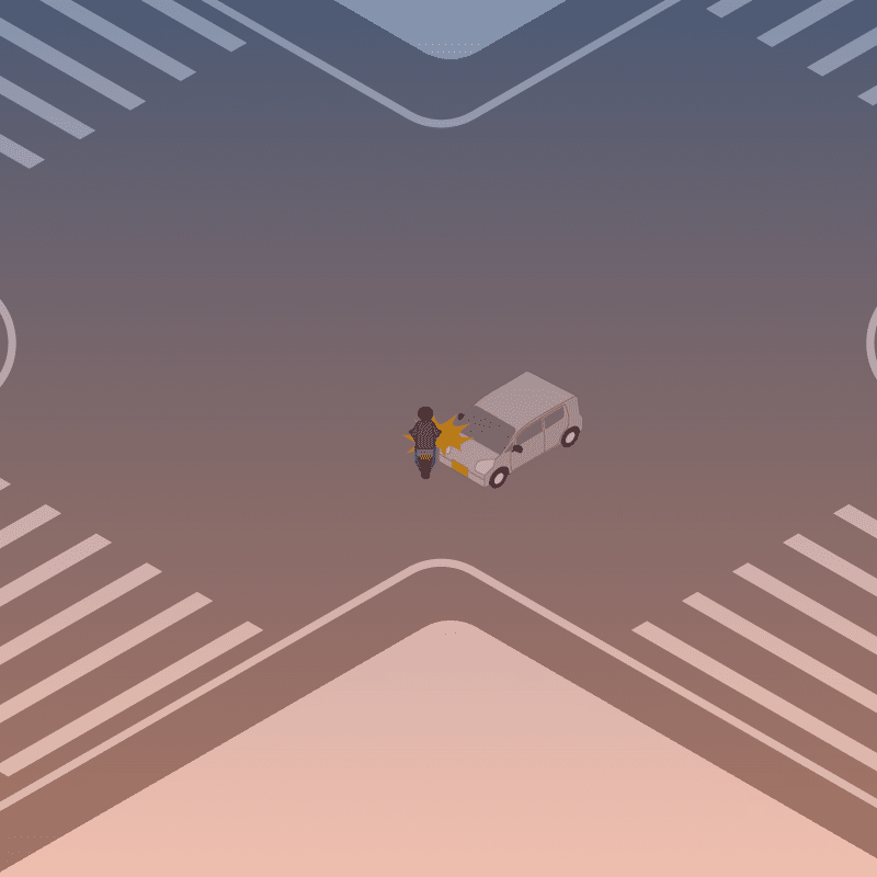 ・イラストに使用している各要素(車、背景、車、天候、信号、衝突地点など)は、代表的なイメージをイラスト化しており、色や形状等含め現実の事故の状況とは異なります。あくまで、事故のイメージとして参考までにご活用ください。