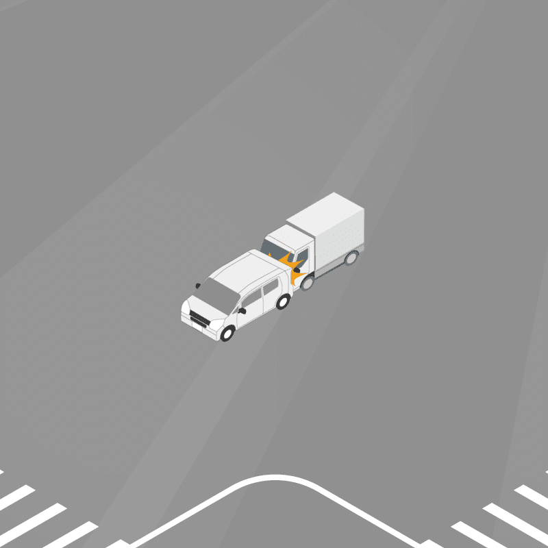 ・イラストに使用している各要素(車、背景、車、天候、信号、衝突地点など)は、代表的なイメージをイラスト化しており、色や形状等含め現実の事故の状況とは異なります。あくまで、事故のイメージとして参考までにご活用ください。