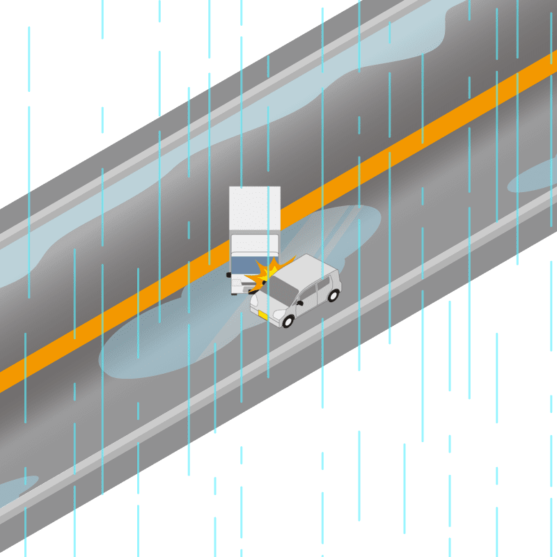 ・イラストに使用している各要素(車、背景、車、天候、信号、衝突地点など)は、代表的なイメージをイラスト化しており、色や形状等含め現実の事故の状況とは異なります。あくまで、事故のイメージとして参考までにご活用ください。
