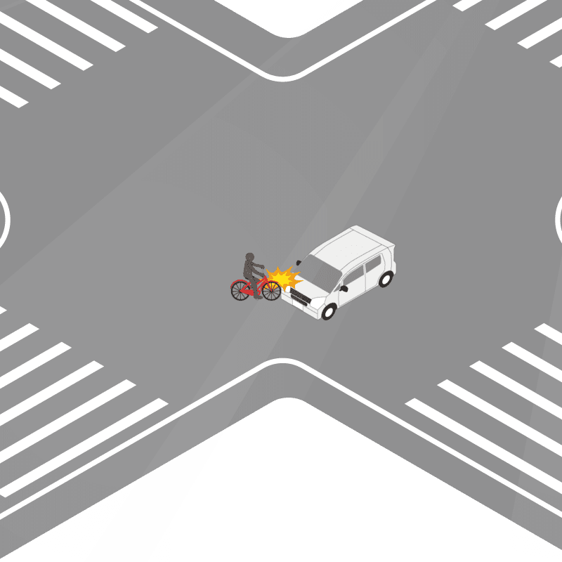 ・イラストに使用している各要素(車、背景、車、天候、信号、衝突地点など)は、代表的なイメージをイラスト化しており、色や形状等含め現実の事故の状況とは異なります。あくまで、事故のイメージとして参考までにご活用ください。