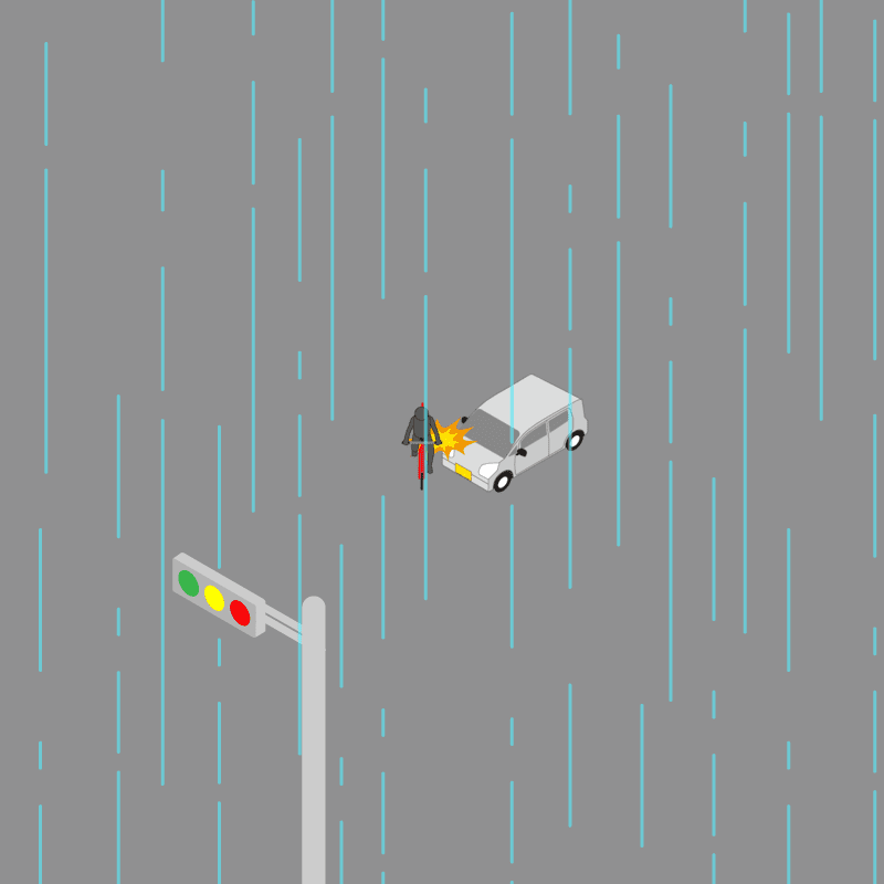 ・イラストに使用している各要素(車、背景、車、天候、信号、衝突地点など)は、代表的なイメージをイラスト化しており、色や形状等含め現実の事故の状況とは異なります。あくまで、事故のイメージとして参考までにご活用ください。