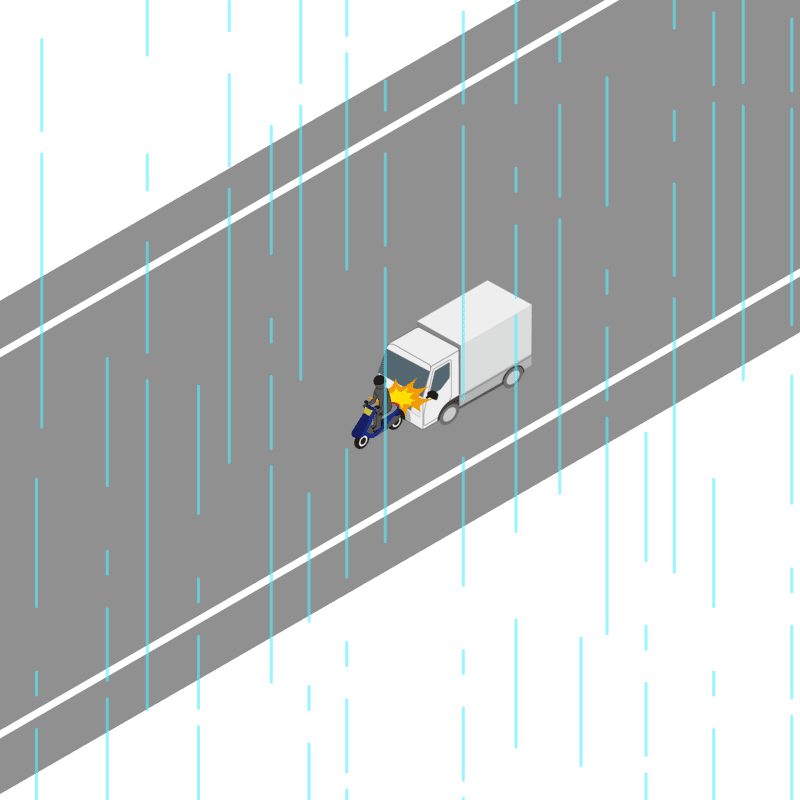 ・イラストに使用している各要素(車、背景、車、天候、信号、衝突地点など)は、代表的なイメージをイラスト化しており、色や形状等含め現実の事故の状況とは異なります。あくまで、事故のイメージとして参考までにご活用ください。