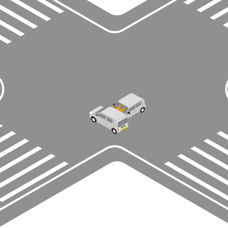 ・イラストに使用している各要素(車、背景、車、天候、信号、衝突地点など)は、代表的なイメージをイラスト化しており、色や形状等含め現実の事故の状況とは異なります。あくまで、事故のイメージとして参考までにご活用ください。