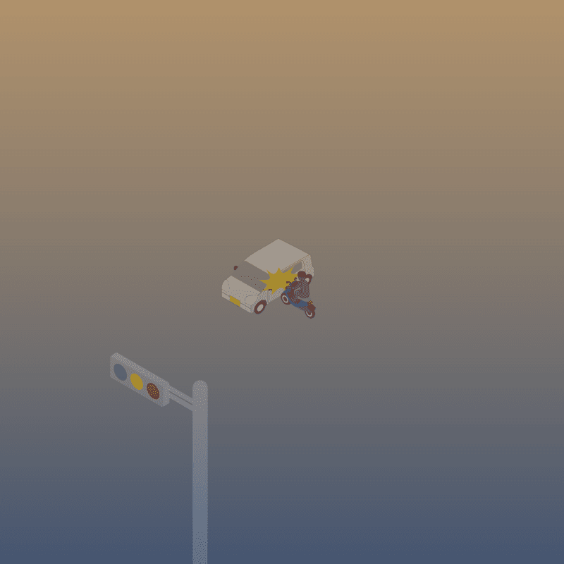 ・イラストに使用している各要素(車、背景、車、天候、信号、衝突地点など)は、代表的なイメージをイラスト化しており、色や形状等含め現実の事故の状況とは異なります。あくまで、事故のイメージとして参考までにご活用ください。