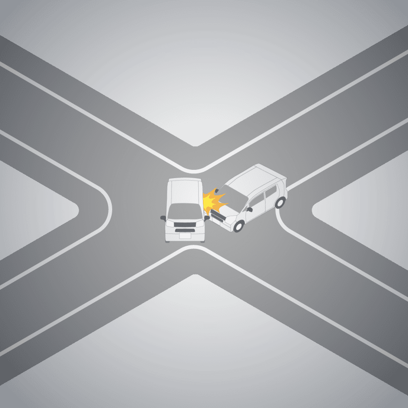 ・イラストに使用している各要素(車、背景、車、天候、信号、衝突地点など)は、代表的なイメージをイラスト化しており、色や形状等含め現実の事故の状況とは異なります。あくまで、事故のイメージとして参考までにご活用ください。