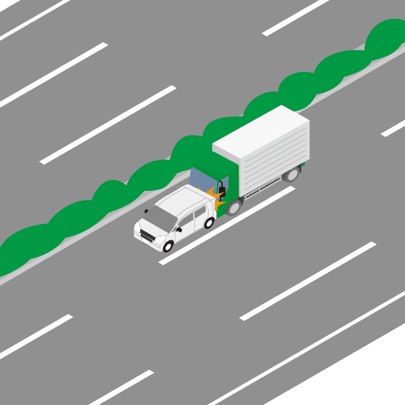 ・イラストに使用している各要素(車、背景、車、天候、信号、衝突地点など)は、代表的なイメージをイラスト化しており、色や形状等含め現実の事故の状況とは異なります。あくまで、事故のイメージとして参考までにご活用ください。
