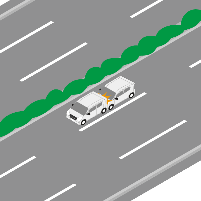 ・イラストに使用している各要素(車、背景、車、天候、信号、衝突地点など)は、代表的なイメージをイラスト化しており、色や形状等含め現実の事故の状況とは異なります。あくまで、事故のイメージとして参考までにご活用ください。