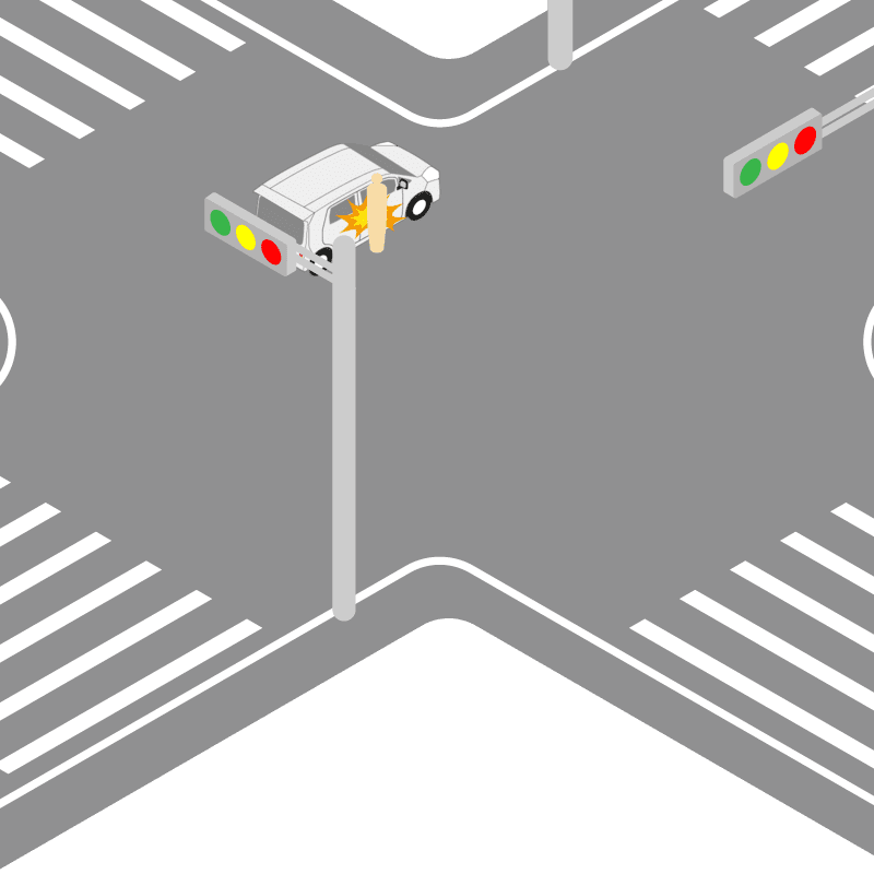 ・イラストに使用している各要素(車、背景、車、天候、信号、衝突地点など)は、代表的なイメージをイラスト化しており、色や形状等含め現実の事故の状況とは異なります。あくまで、事故のイメージとして参考までにご活用ください。