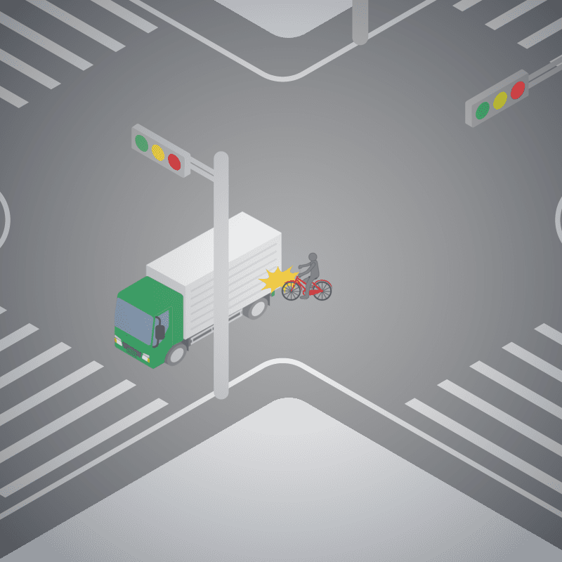 ・イラストに使用している各要素(車、背景、車、天候、信号、衝突地点など)は、代表的なイメージをイラスト化しており、色や形状等含め現実の事故の状況とは異なります。あくまで、事故のイメージとして参考までにご活用ください。
