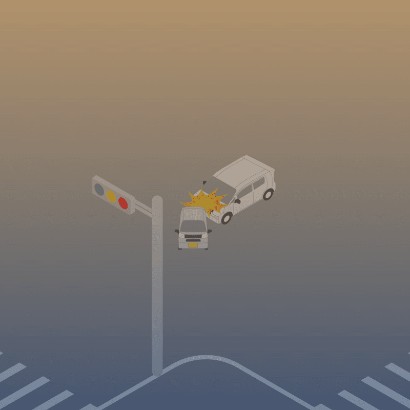 ・イラストに使用している各要素(車、背景、車、天候、信号、衝突地点など)は、代表的なイメージをイラスト化しており、色や形状等含め現実の事故の状況とは異なります。あくまで、事故のイメージとして参考までにご活用ください。