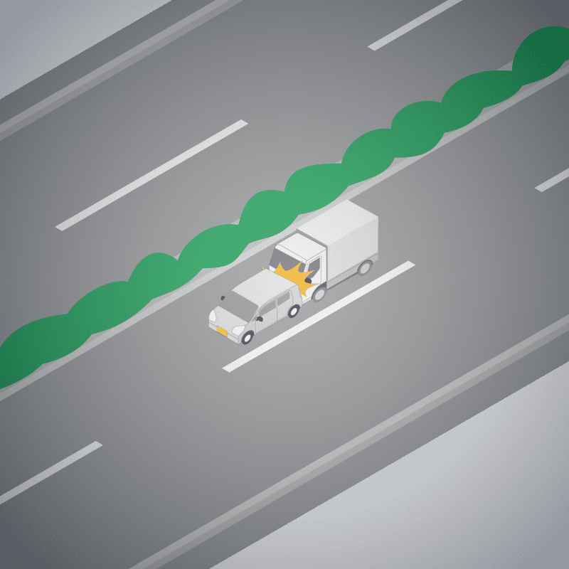 ・イラストに使用している各要素(車、背景、車、天候、信号、衝突地点など)は、代表的なイメージをイラスト化しており、色や形状等含め現実の事故の状況とは異なります。あくまで、事故のイメージとして参考までにご活用ください。