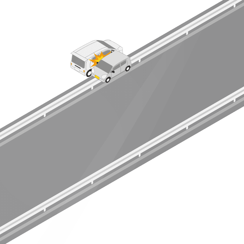 ・イラストに使用している各要素(車、背景、車、天候、信号、衝突地点など)は、代表的なイメージをイラスト化しており、色や形状等含め現実の事故の状況とは異なります。あくまで、事故のイメージとして参考までにご活用ください。