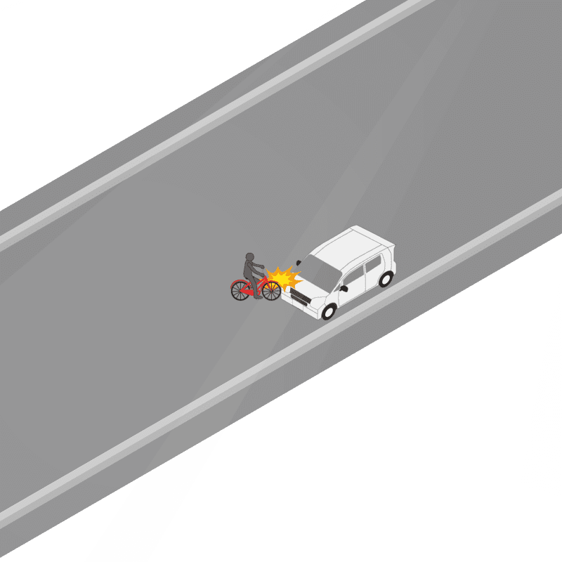 ・イラストに使用している各要素(車、背景、車、天候、信号、衝突地点など)は、代表的なイメージをイラスト化しており、色や形状等含め現実の事故の状況とは異なります。あくまで、事故のイメージとして参考までにご活用ください。