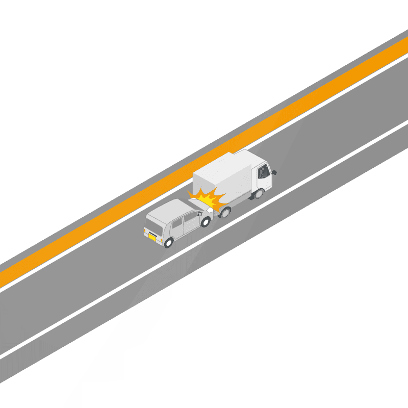 ・イラストに使用している各要素(車、背景、車、天候、信号、衝突地点など)は、代表的なイメージをイラスト化しており、色や形状等含め現実の事故の状況とは異なります。あくまで、事故のイメージとして参考までにご活用ください。