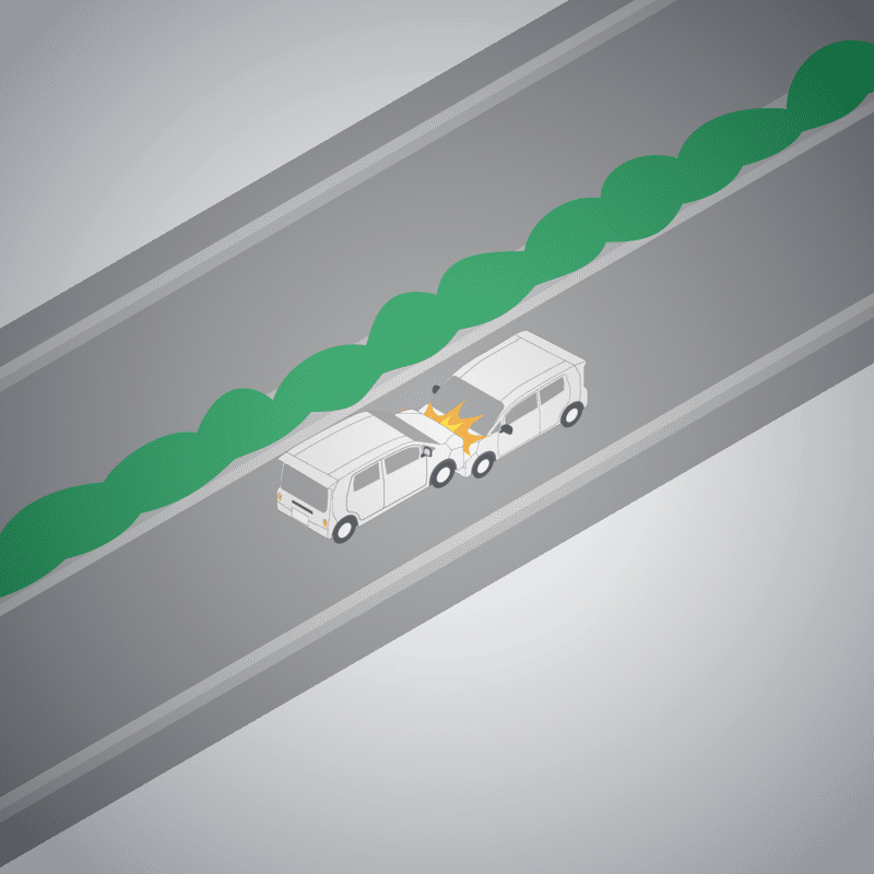 ・イラストに使用している各要素(車、背景、車、天候、信号、衝突地点など)は、代表的なイメージをイラスト化しており、色や形状等含め現実の事故の状況とは異なります。あくまで、事故のイメージとして参考までにご活用ください。