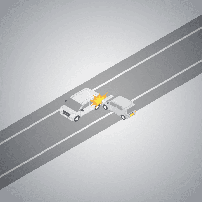 ・イラストに使用している各要素(車、背景、車、天候、信号、衝突地点など)は、代表的なイメージをイラスト化しており、色や形状等含め現実の事故の状況とは異なります。あくまで、事故のイメージとして参考までにご活用ください。