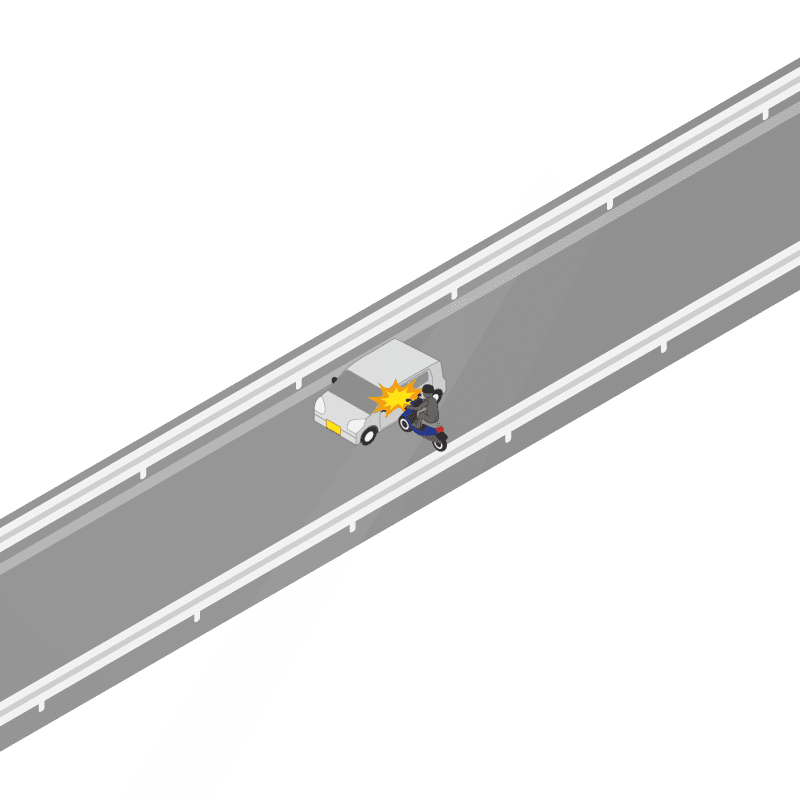 ・イラストに使用している各要素(車、背景、車、天候、信号、衝突地点など)は、代表的なイメージをイラスト化しており、色や形状等含め現実の事故の状況とは異なります。あくまで、事故のイメージとして参考までにご活用ください。