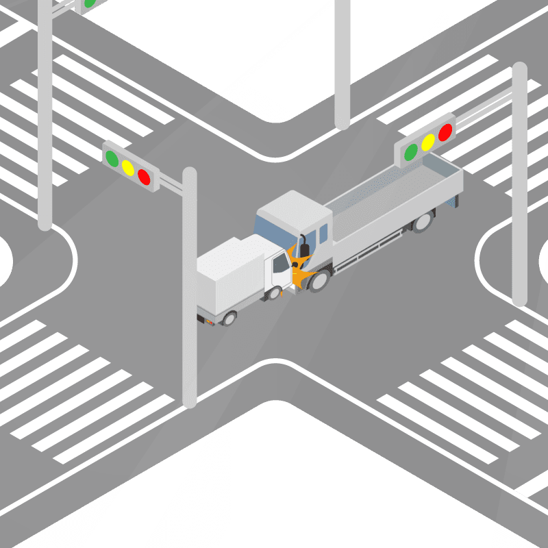 ・イラストに使用している各要素(車、背景、車、天候、信号、衝突地点など)は、代表的なイメージをイラスト化しており、色や形状等含め現実の事故の状況とは異なります。あくまで、事故のイメージとして参考までにご活用ください。