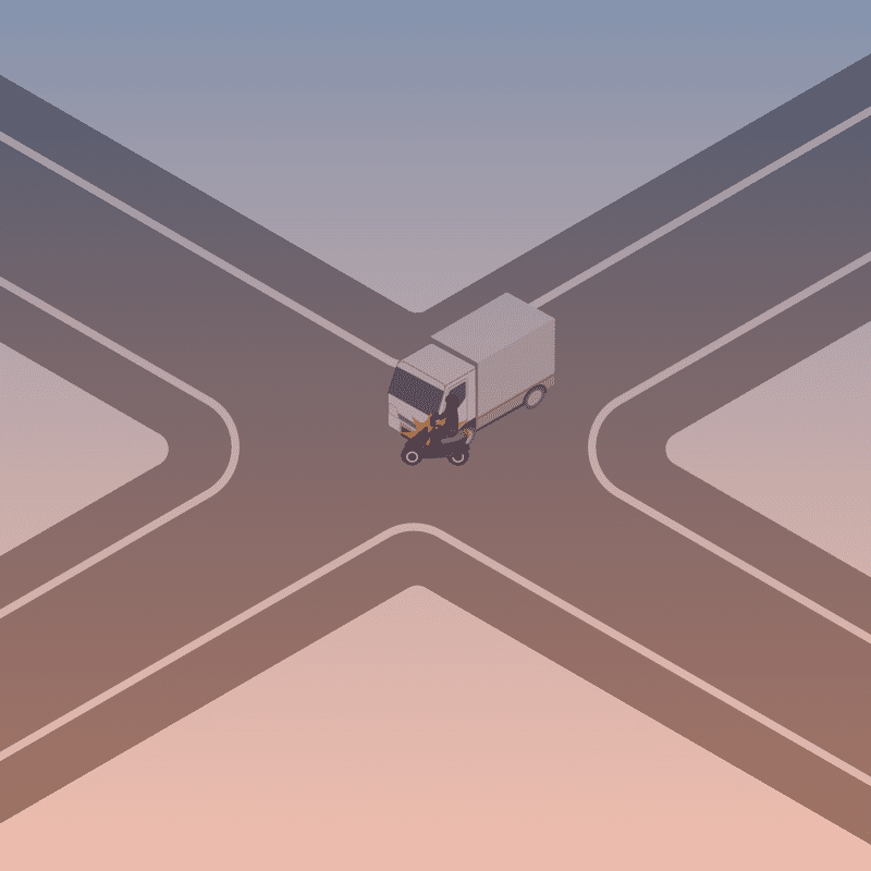 ・イラストに使用している各要素(車、背景、車、天候、信号、衝突地点など)は、代表的なイメージをイラスト化しており、色や形状等含め現実の事故の状況とは異なります。あくまで、事故のイメージとして参考までにご活用ください。