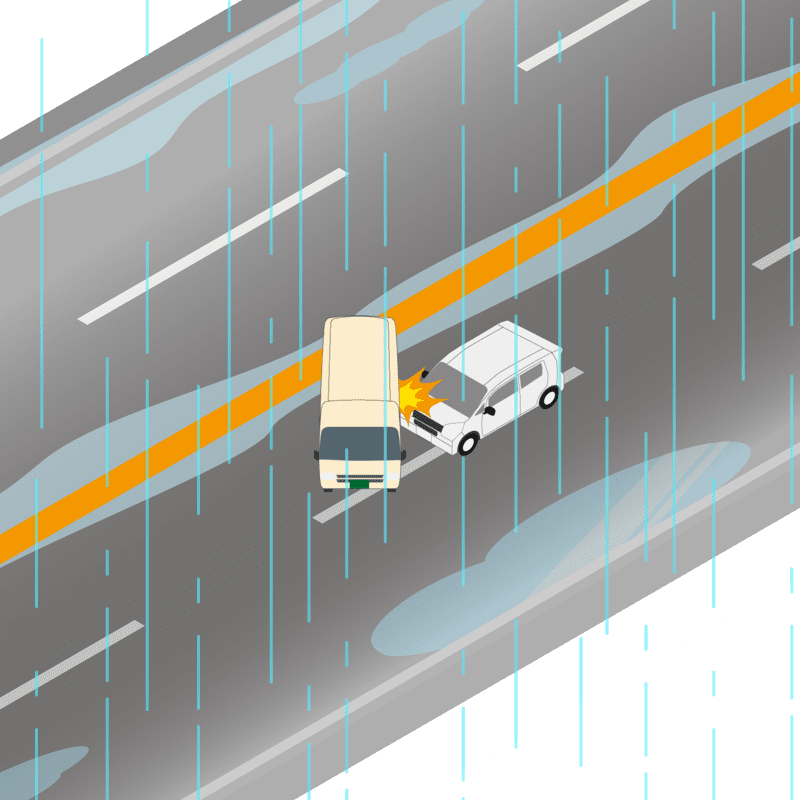 ・イラストに使用している各要素(車、背景、車、天候、信号、衝突地点など)は、代表的なイメージをイラスト化しており、色や形状等含め現実の事故の状況とは異なります。あくまで、事故のイメージとして参考までにご活用ください。