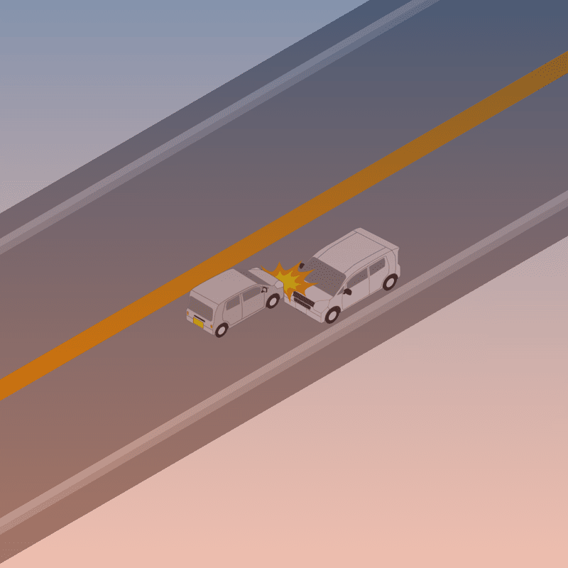 ・イラストに使用している各要素(車、背景、車、天候、信号、衝突地点など)は、代表的なイメージをイラスト化しており、色や形状等含め現実の事故の状況とは異なります。あくまで、事故のイメージとして参考までにご活用ください。