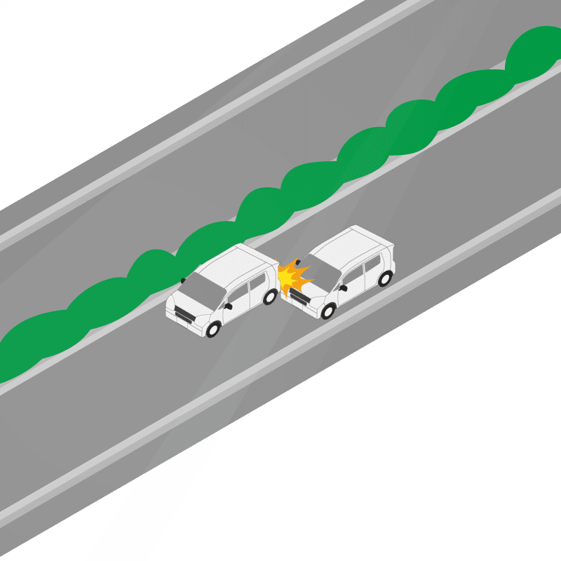 ・イラストに使用している各要素(車、背景、車、天候、信号、衝突地点など)は、代表的なイメージをイラスト化しており、色や形状等含め現実の事故の状況とは異なります。あくまで、事故のイメージとして参考までにご活用ください。