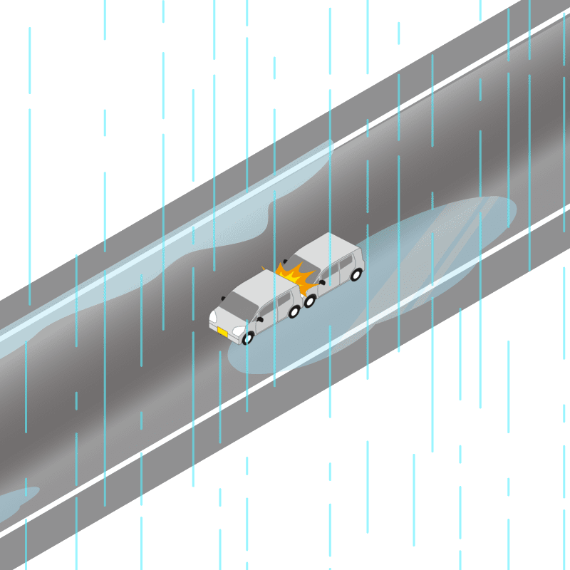 ・イラストに使用している各要素(車、背景、車、天候、信号、衝突地点など)は、代表的なイメージをイラスト化しており、色や形状等含め現実の事故の状況とは異なります。あくまで、事故のイメージとして参考までにご活用ください。