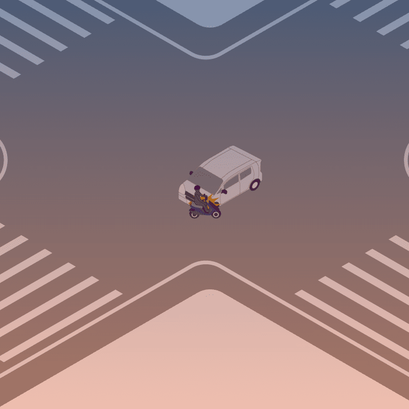 ・イラストに使用している各要素(車、背景、車、天候、信号、衝突地点など)は、代表的なイメージをイラスト化しており、色や形状等含め現実の事故の状況とは異なります。あくまで、事故のイメージとして参考までにご活用ください。
