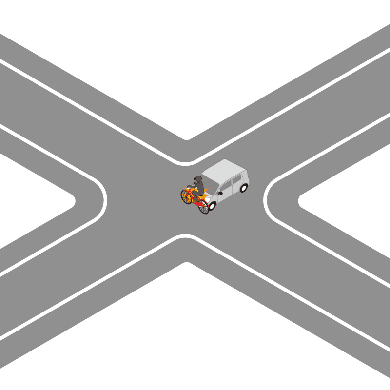 ・イラストに使用している各要素(車、背景、車、天候、信号、衝突地点など)は、代表的なイメージをイラスト化しており、色や形状等含め現実の事故の状況とは異なります。あくまで、事故のイメージとして参考までにご活用ください。