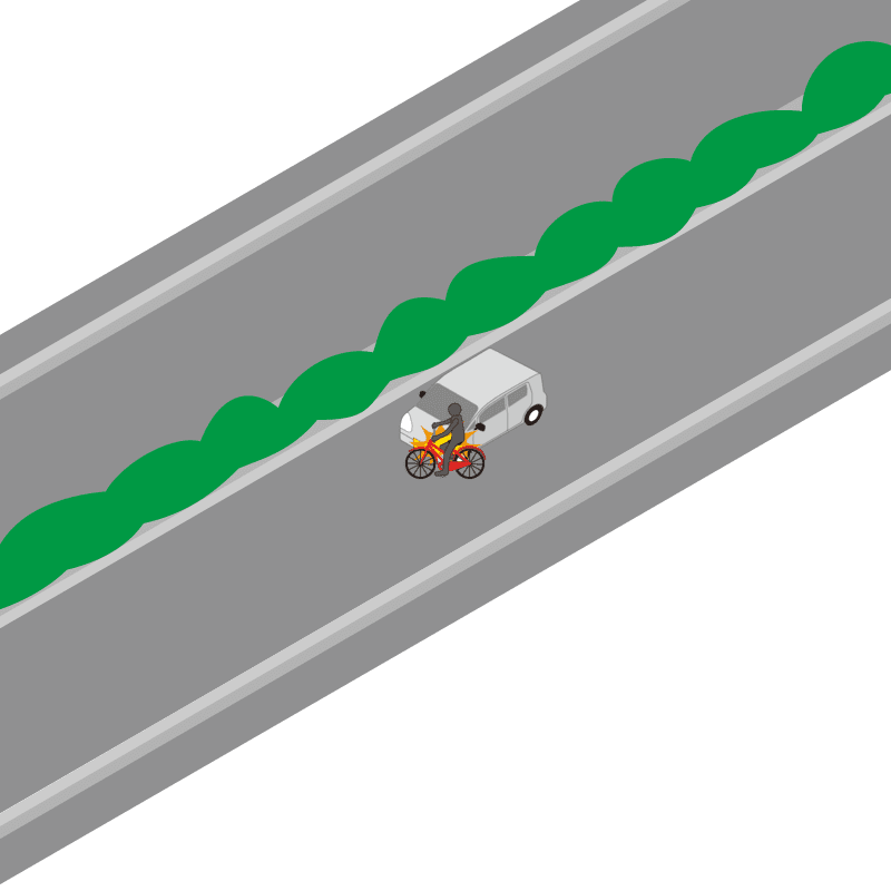 ・イラストに使用している各要素(車、背景、車、天候、信号、衝突地点など)は、代表的なイメージをイラスト化しており、色や形状等含め現実の事故の状況とは異なります。あくまで、事故のイメージとして参考までにご活用ください。