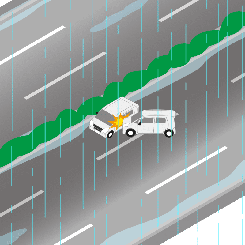 ・イラストに使用している各要素(車、背景、車、天候、信号、衝突地点など)は、代表的なイメージをイラスト化しており、色や形状等含め現実の事故の状況とは異なります。あくまで、事故のイメージとして参考までにご活用ください。